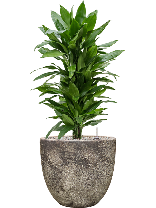 Dracaena fragrans Janet Lind + Sandora Brown (24x97cm)-komplet set je kompletní set rostliny a keramického květináče včetně vodotěsné vložky a vulkastrátu. Ten 100% nahrazuje zeminu. Zobrazit více
